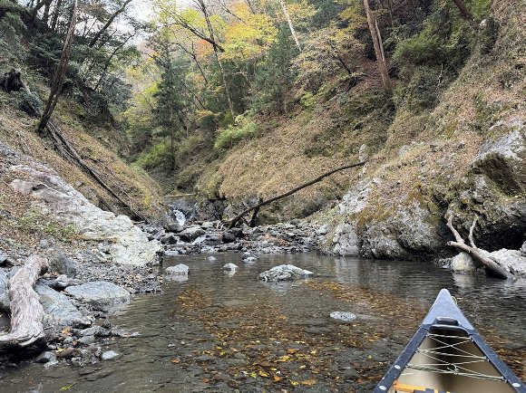 ![]() しかし、倒木、木々の枝などが行く手を塞ぎ、水深も浅くなる |