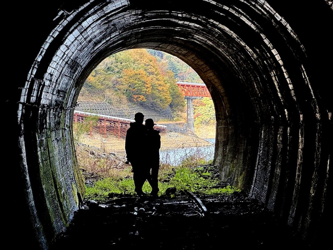 来るときに、 カヌーで進入した 廃線のトンネルの 逆側から 徒歩で探検