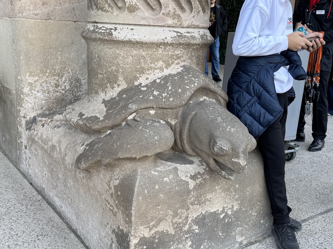 ![]() エレベーターで鐘楼へ登り、 下りは階段 下部はアンモナイトの様 |