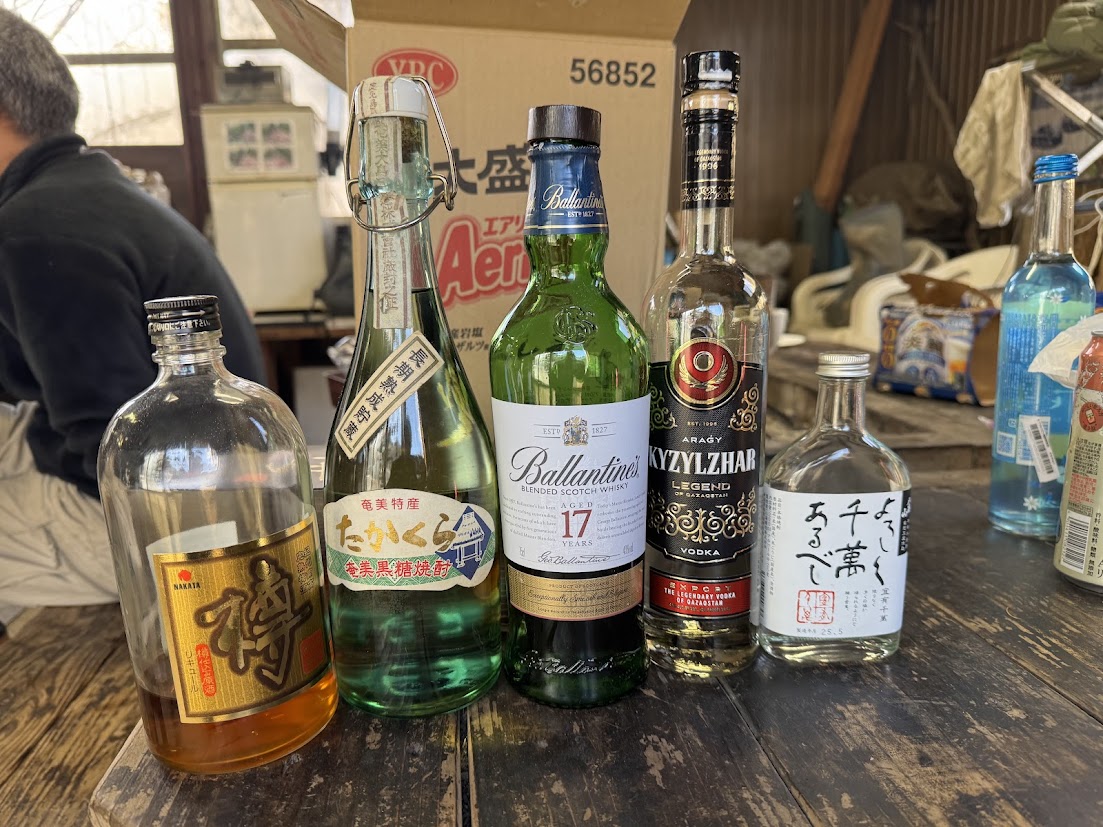 私の持って行った酒は、バランタイン17年、カザフスタンウォッカ、黒糖焼酎 高倉