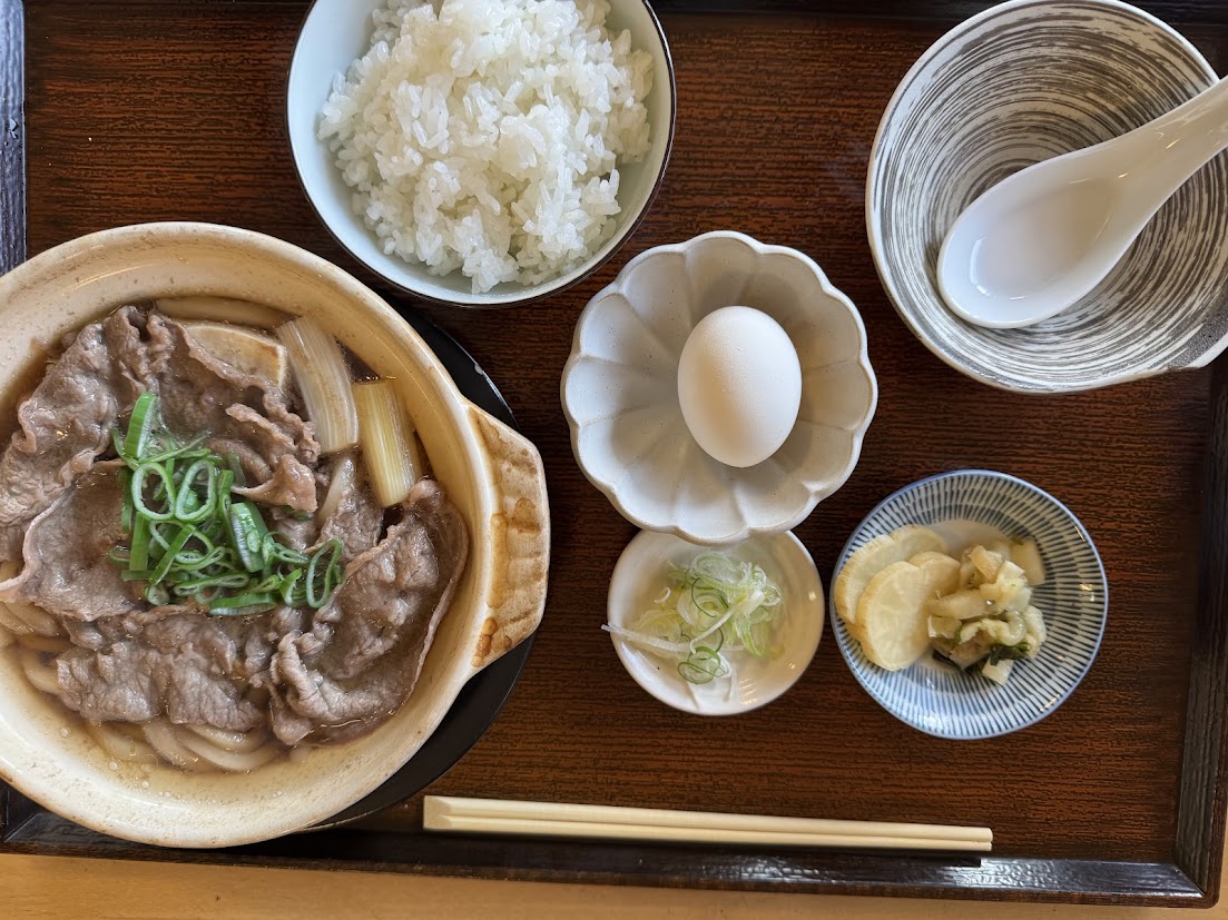 鍋焼きうどん 薄味だが 美味い お肉たっぷり 白米ごはんが 美味い
