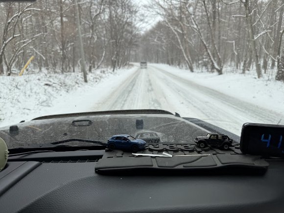 ![]() 白樺湖を越え 下り坂も、 延々と 雪道 |