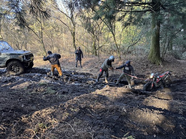 ![]() 珍しい バイクでスタック ウィンチ レスキュー |