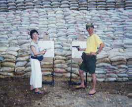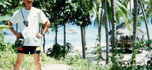 | ファンダイブの途中、とある島のあずま屋で昼食 顔が切れているのは、撮影ミスです |