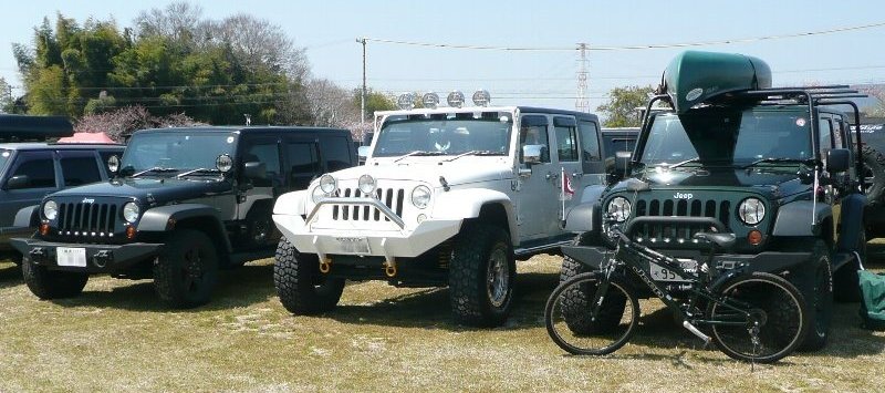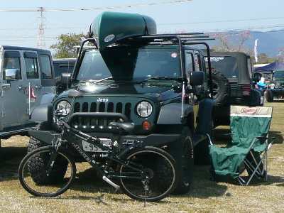 JeepラングラーMTBを後部のサイクルキャリアーに積載しての参加であった。
