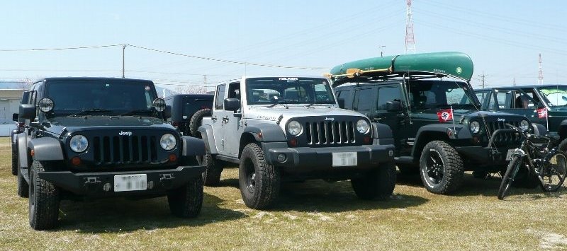 ![]() 中央のシルバーのルビコンは、知多のTさん タイヤサイズが大きくなり、オーバーフェンダーは自作 |