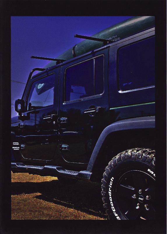 車両そのものではなく、私のJeepライフの演出と、カヌー、バドルをルーフに、