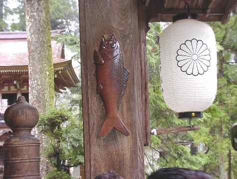 No.12 谷汲山 華厳寺 本堂向拝の両柱に青銅で出来た鯉 西国を旅した巡礼たちがこの鯉をなでてなめ、精進落ちの印にする奇習があります |