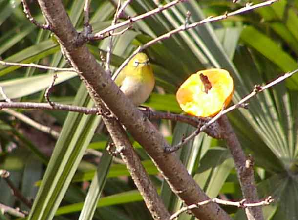 あ、近くの木にメジロがいる。