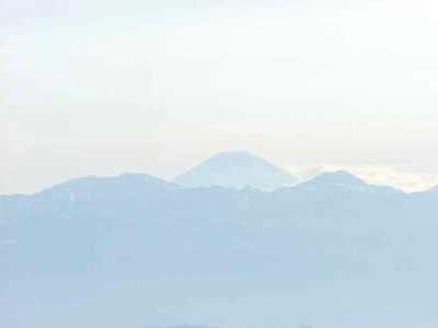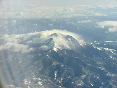 眼下の御嶽山そして富士山を遠望しながら飛行