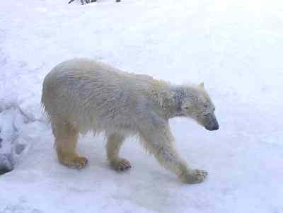 北極グマ館 巨大なクマが、動きまわり、泳ぎまわる姿は ど迫力であった。