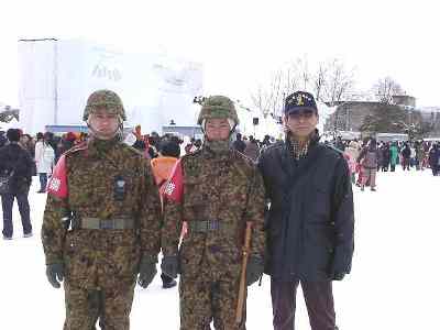 警備の自衛官さんといっしょに記念写真を撮る。