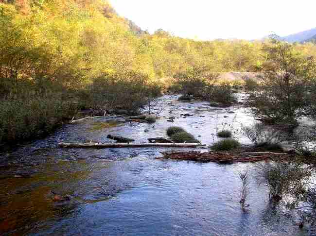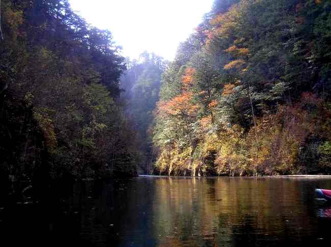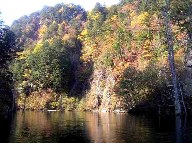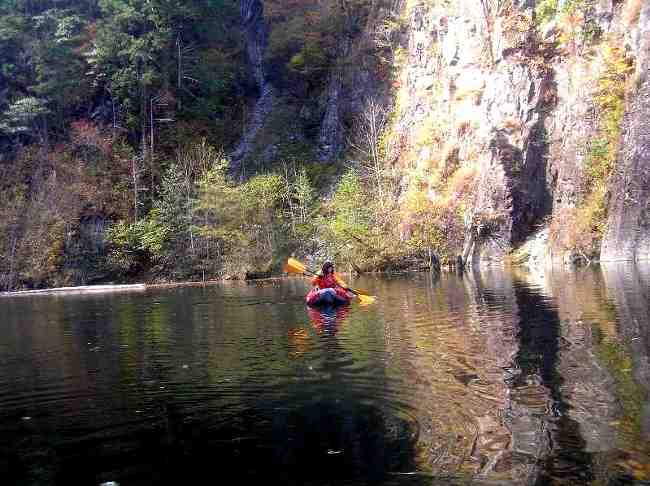 10 自然湖の最深部、水がきれい 岸に上がり、塩ラーメンとおにぎりの、おきまりランチ しかし、熊情報を聞いた後なので、早々に引き上げる。 前回、9月には、ここで、猿と遭遇。 初めて来た2年前には、この岸で、昼寝していて、 岩の崩落の轟音で、目が覚め 慌てて、引き上げたのだ。 |