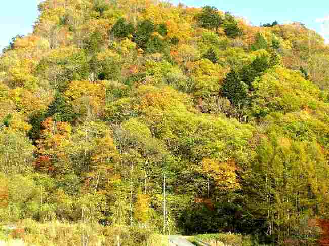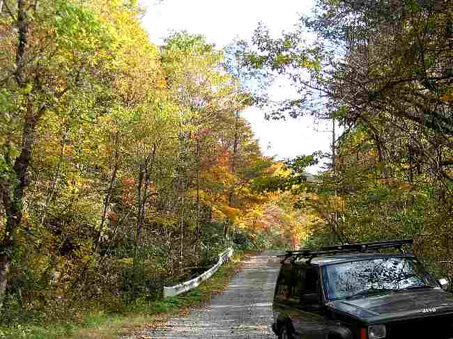 33 王滝温泉への、紅葉のダート 途中から幸運にも、未舗装道路となり、ダート走行を楽しむ。 |