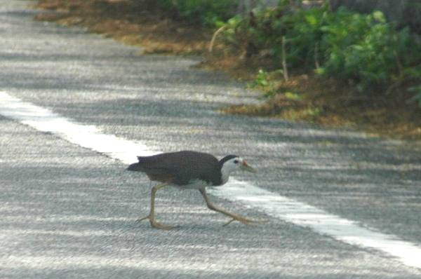 北の 池間島で、 道路を横断する、クイナを発見 あせって、ピントがずれてしまったが、