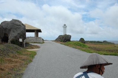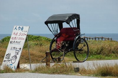 南の灯台まで走る。 駐車場から、灯台まで、200m位であったが、人力車があったので、片道500円で乗る。