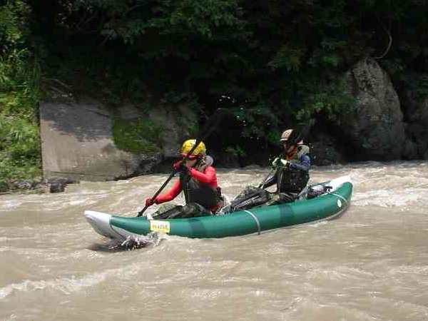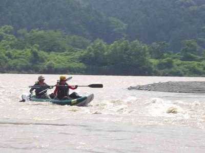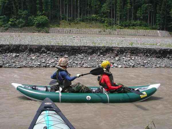 お互いに、1艇では、絶対に漕がない濁流であったが、天気も良いし、漕ぎましょう・・・と出発。