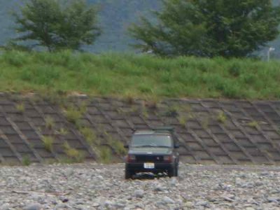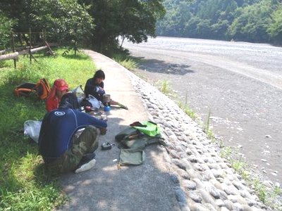 ![]() 千頭の川原で準備 |