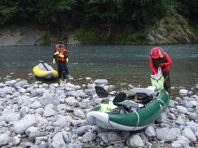 ![]() Yonekura艇 奥さんが、何と瀬の中でこちらを撮っている |