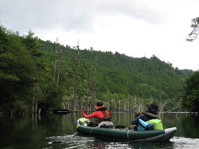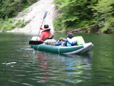 最深部へ、会ったカヌーは、なんと手作りであった。 |