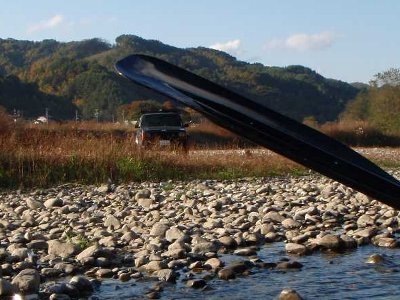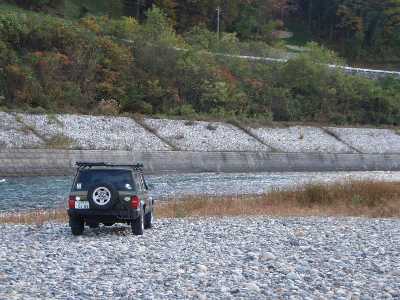 犀川上陸地点 川から目立つようにMyJeepを置く |
