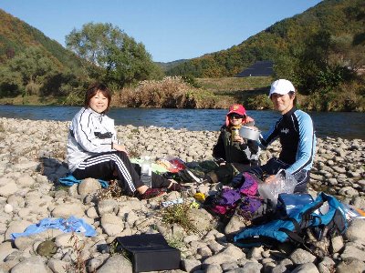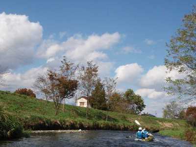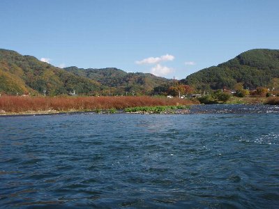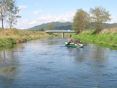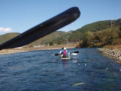 腹ごしらえも終わり、再出発、 犀川の合流点までは、いままでより流れが速い。