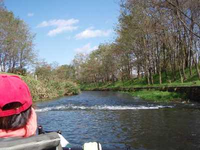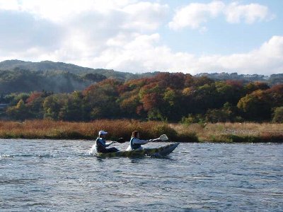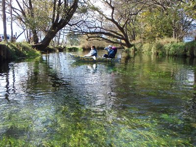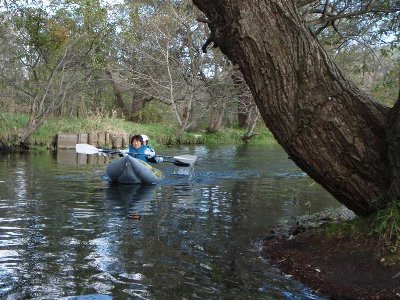 最初の漕ぎ出しは浅く、艇が座礁したが、その後は水深は充分で、ひっかかる事はなかった。