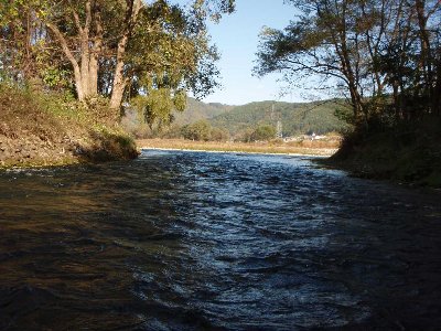 初めての川なので、下ってきて川から目立つように、車を流れの近くに置く。
