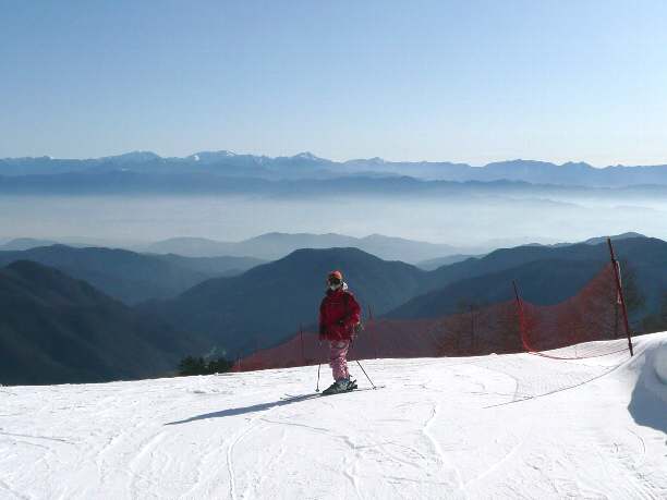 真っ青な空、南アルプスがはっきりと見える絶景のゲレンデ。