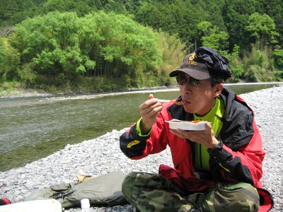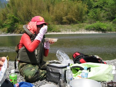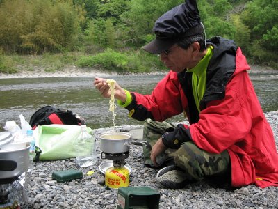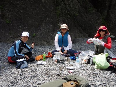 笹合の川原で、お湯を沸かし、のんびりと、ランチタイム、