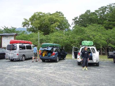 上流へと移動、川原へ艇を運ぶのであるが、この道は車は入れない、