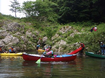 漕ぎ出して、すぐ落ち込みがあるというので、慎重に進入。