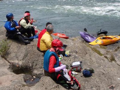 3点の瀬で、お弁当を食べながら、他のパーティのサーフィンを見物