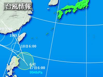 | しかし、何と、前日になって、フィリピンの東に台風が発生。 994hPaと、小さく台湾の南を通過のコースなので、 陸上に大きな影響はないだろうが石垣島は、台湾のすぐ東に位置する。 台風は遠くても、海のうねりなどで、潜水できない場合も起る。 ダイビングへの影響が出ないように、祈りながら、出かけた。