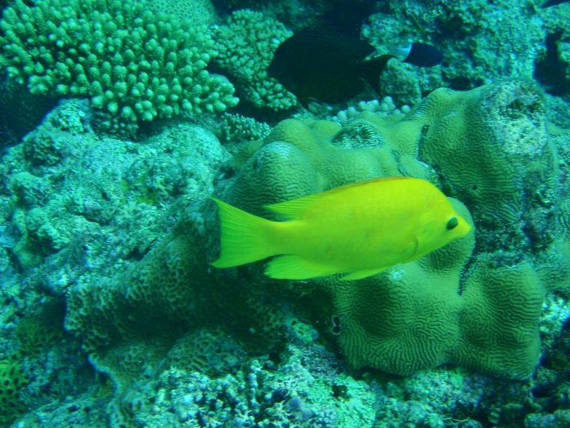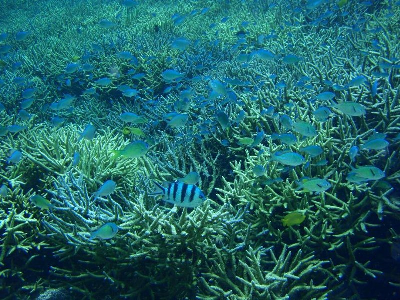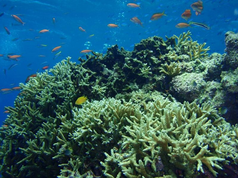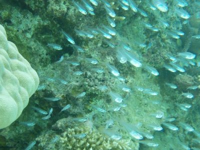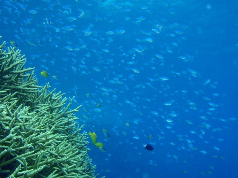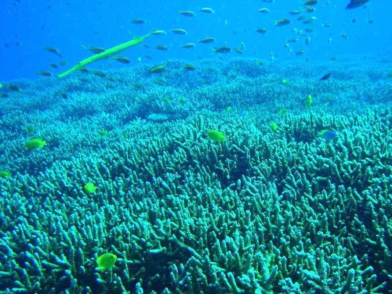 午後のダイブも、透明度抜群、波なし 珊瑚の海を満喫できた。
