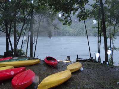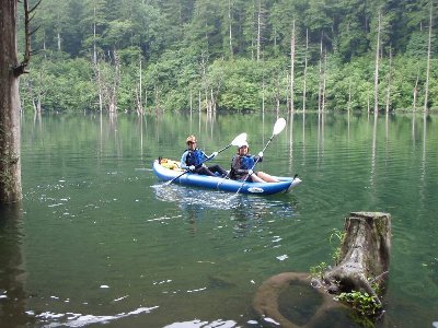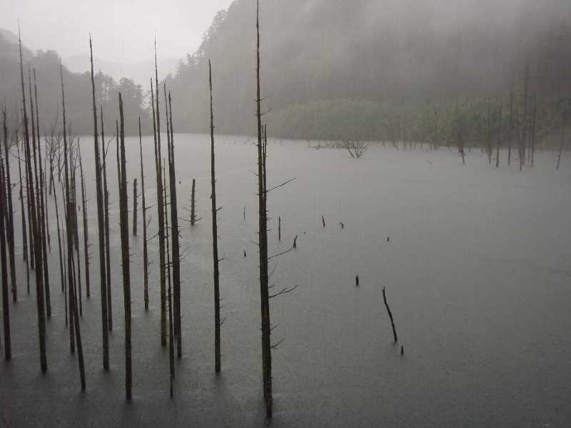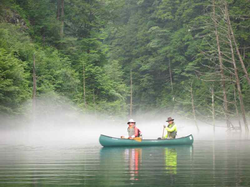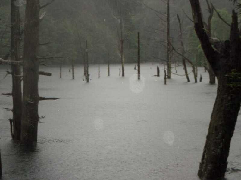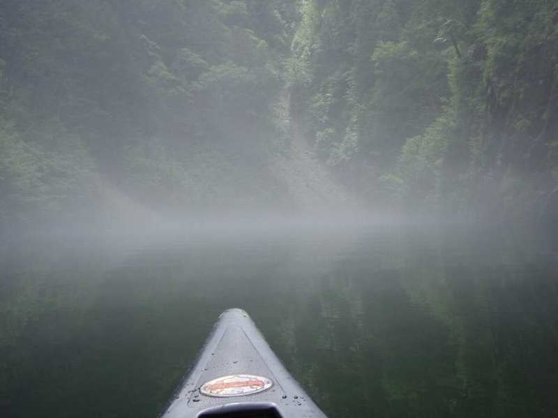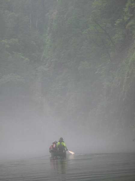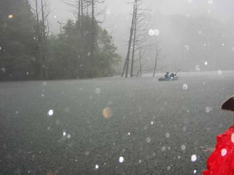 恐ろしいほど、幻想的な自然湖 恐ろしかった、豪雨の漕艇 |