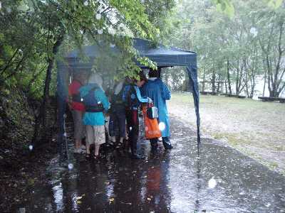 しばらく、木陰で、雨宿りする。