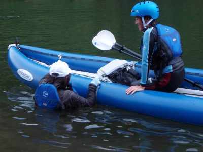 沈した場合の、再乗艇の方法を練習。