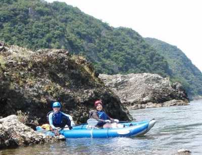 いきなり、大きな瀬を4つ越え、へばる もけけっちさんと、 元気な、奥さん(笑) |