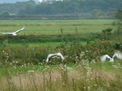 私達の姿に、民家の犬が激しく吠える、 その声で、たんちょう鶴の親子は飛んでいってしまった。