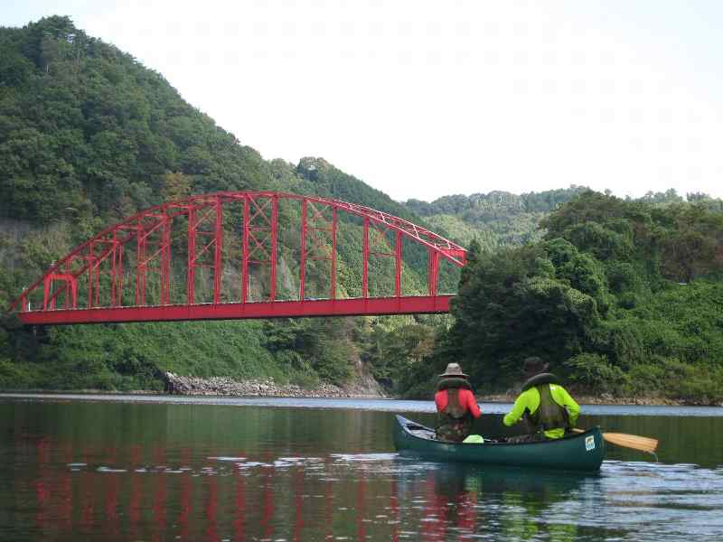 ![]() ダムを越え 赤い橋へ |