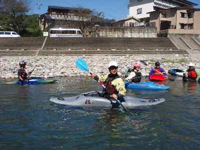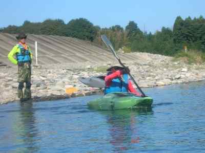 可児市カヌー協会さんが、鮎の瀬で、カヤックのパドリング練習をするので、