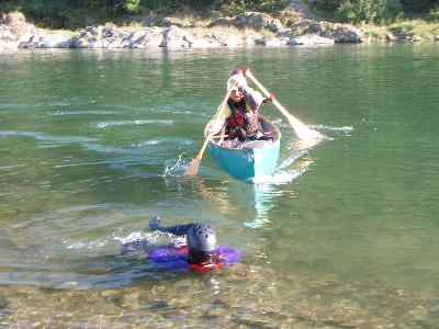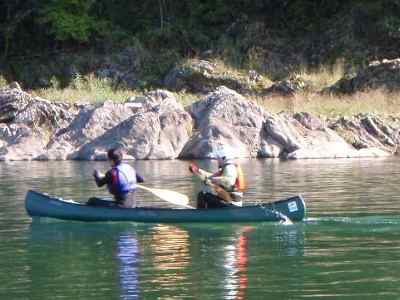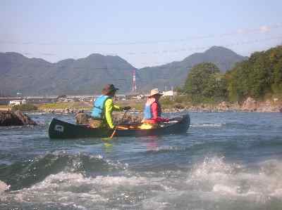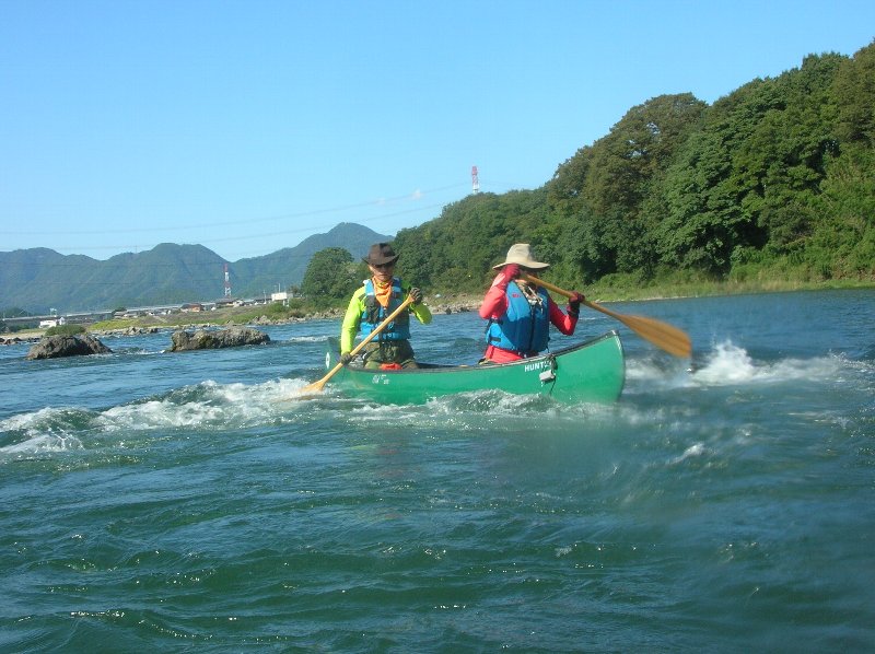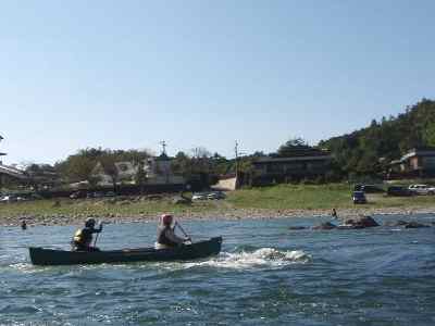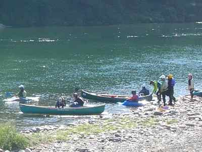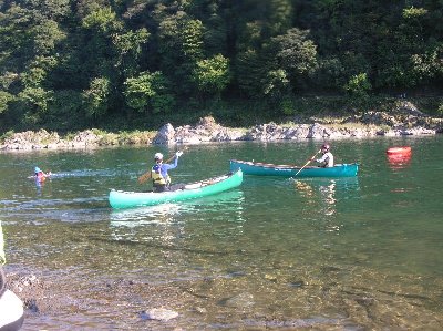 私達は、カナディアンカヌーの基礎練習をする、 鮎の瀬には、素浪人Uが怖がり、入れない。