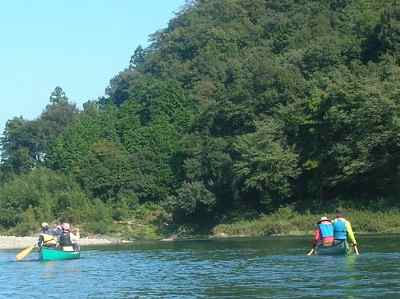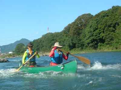 カナディアン 2艇で、鮎の瀬に向かって上流へと漕ぐ。