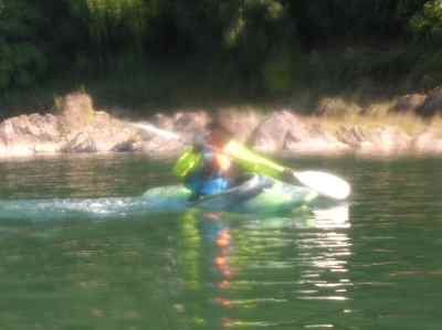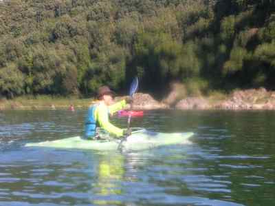 しばし、休憩後、 素浪人Uが、カヤックを漕いでみたいと、Iさんのカヤックを、借りて漕ぎ出す。