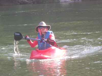Iさんも、ヤマネコV号艇を 漕ぐ |
