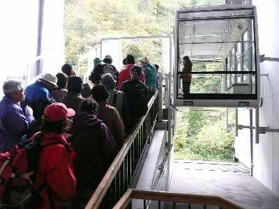 ロープウェイ発車間際だったので、急いで乗る、鍋平駅で、次のロープウェイにも、すぐ乗り継げた。