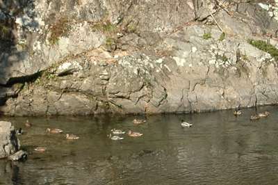 下流の岩の先で見えなくなってしまった、しばらく待ったが、それ以外には、オシドリはいないようだ。