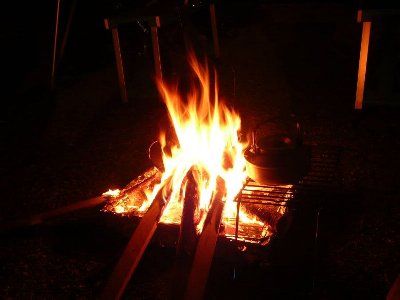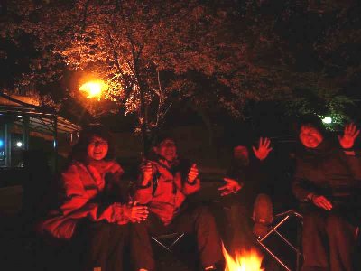 夕食後、セットしてあった、タープ、焚き火を囲み、宴会。