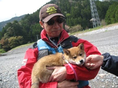 何と、子犬を連れたジョアキンさんと遭遇したのだ、去年の初漕ぎの時も、そうだった。